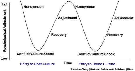 Após a fase do choque cultural, as pessoas começam a entender e assimilar as diferenças culturais. A nova cultura passa a integrar seu repertório de comportamentos e atitudes. Adaptados, estudantes e profissionais sentem-se mais conectados à cultura local, surgem os relacionamentos, amizades e as pessoas se sentem mais confiantes e confortáveis. Não é incomum que prefiram alguns aspectos da nova cultura à sua cultura anterior.